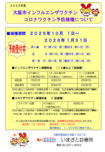 - インフルエンザワクチン・コロナワクチン予防接種開始のお知らせ [2025.09.26更新]
